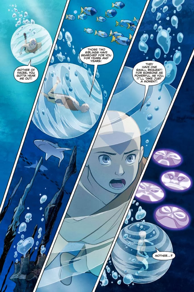 Y con este ya van tres espiritus que ha visto Katara (antes vio a la Dama Pintada ya la Loba Azul) ¿no se suponia que solo el Avatar podia verlos?
